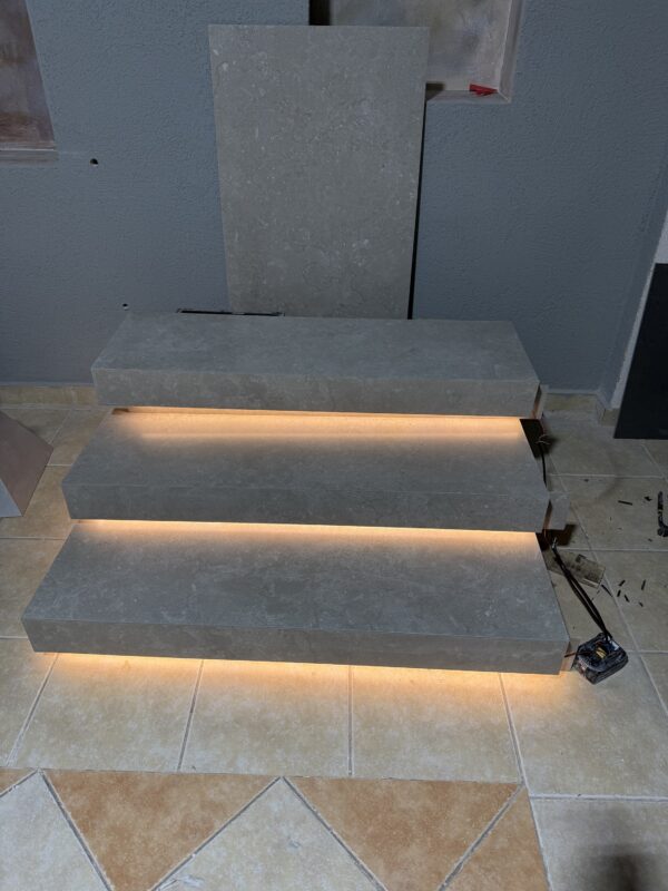 Transform your space into a statement of elegance with a custom-made porcelain staircase that combines durability with refined aesthetics. Featuring clean geometric lines and integrated hidden LED lighting beneath each step, this design creates a sophisticated, high-end visual effect.